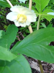 ポドフィルム ペルタツム(別名) アメリカ ハッカクレンの上から見た感じです。花わ5月中頃から咲き出した。